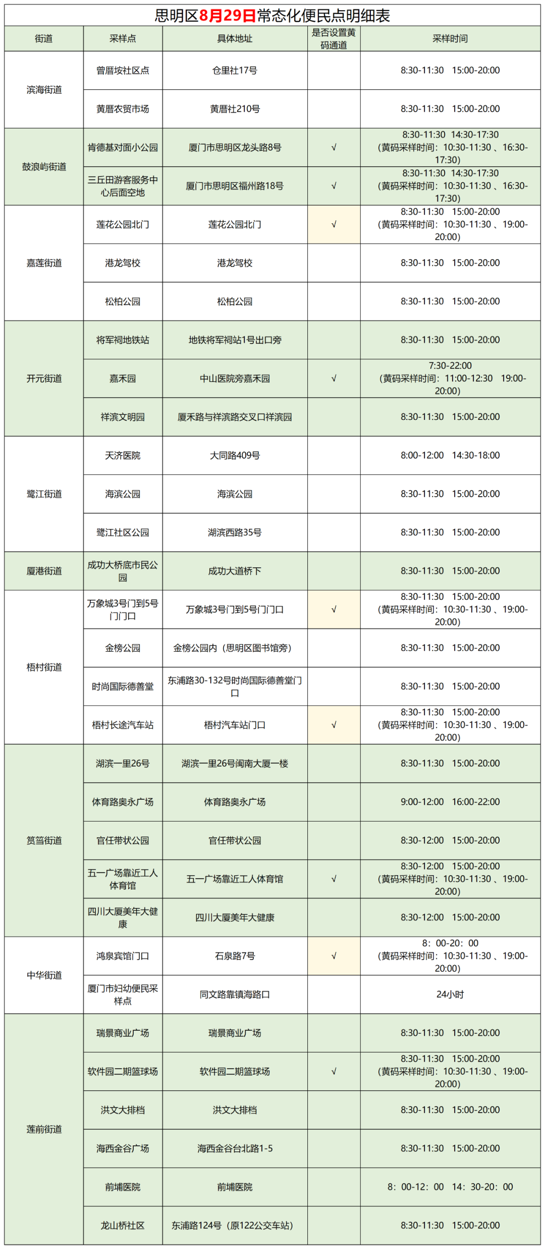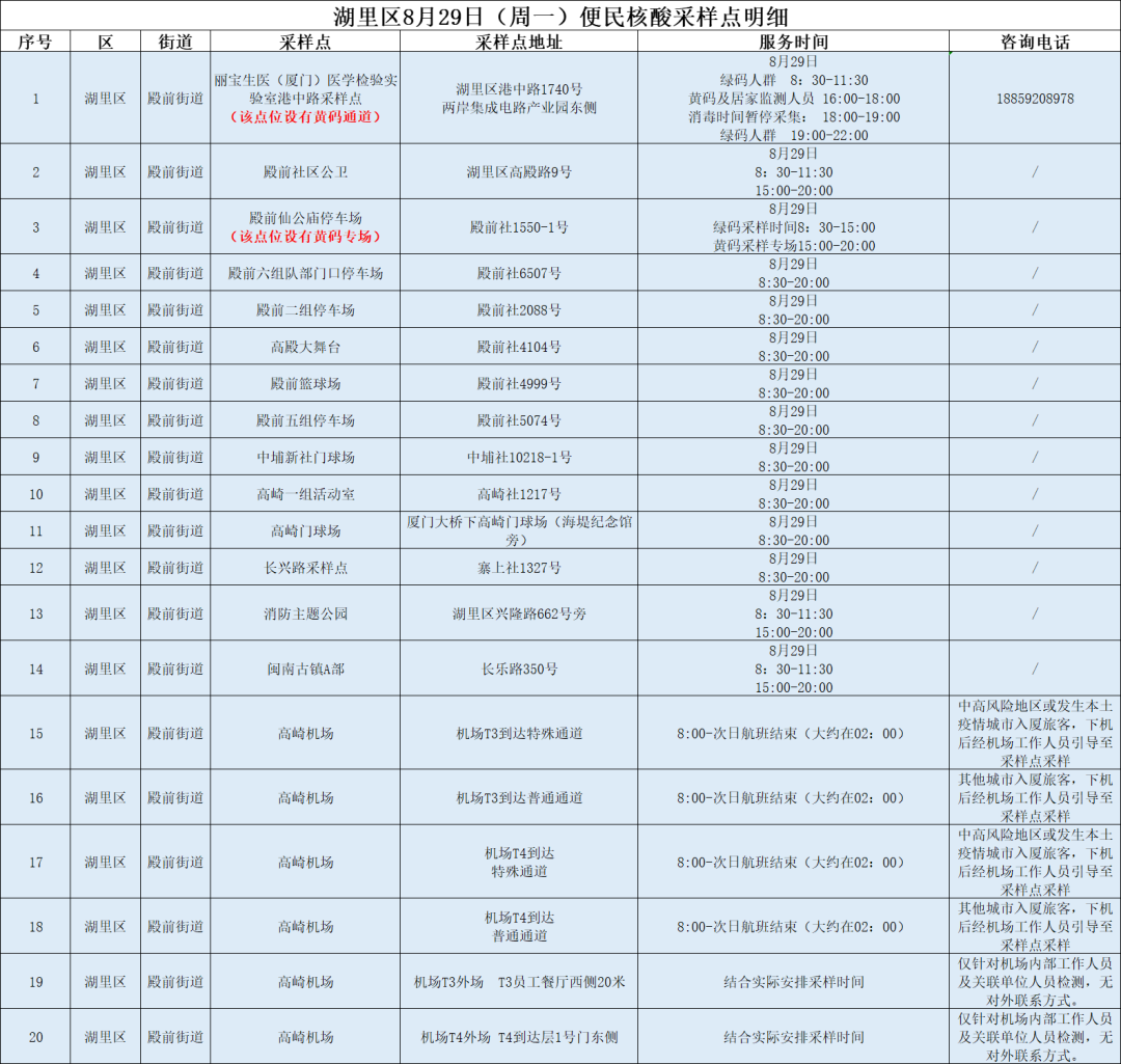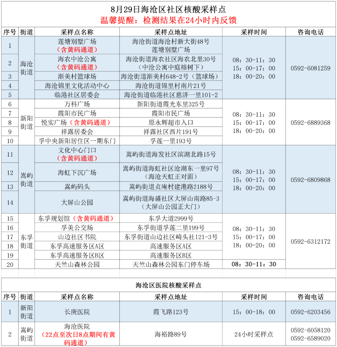 2022年8月29日厦门核酸检测点(厦门2021年春节返乡核酸检测)