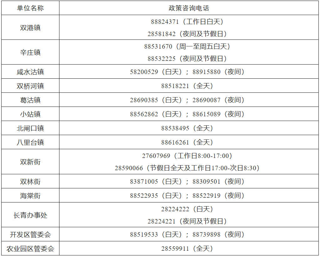 津南区主动报告与政策咨询电话