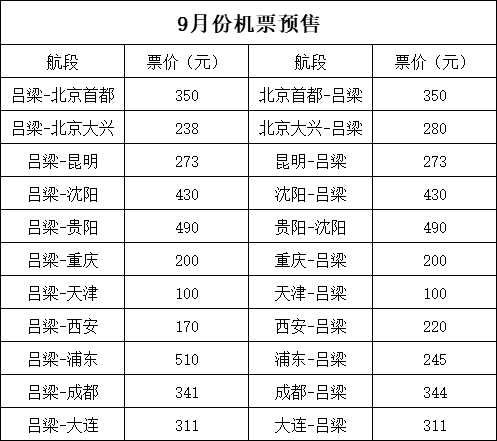 2022吕梁机场9月机票特价 吕梁机场今天航班