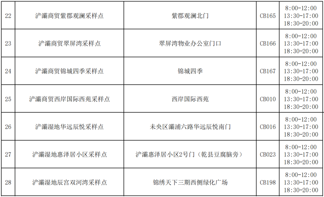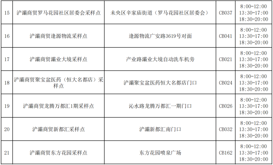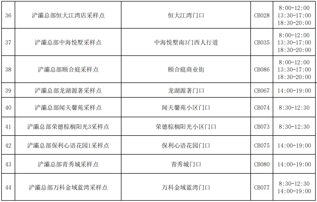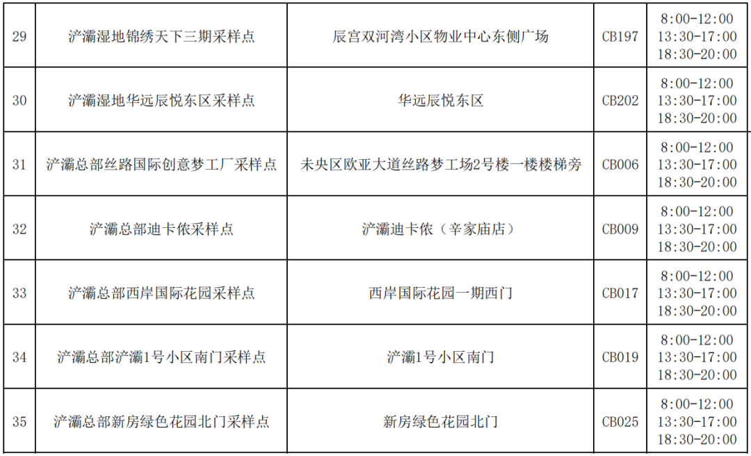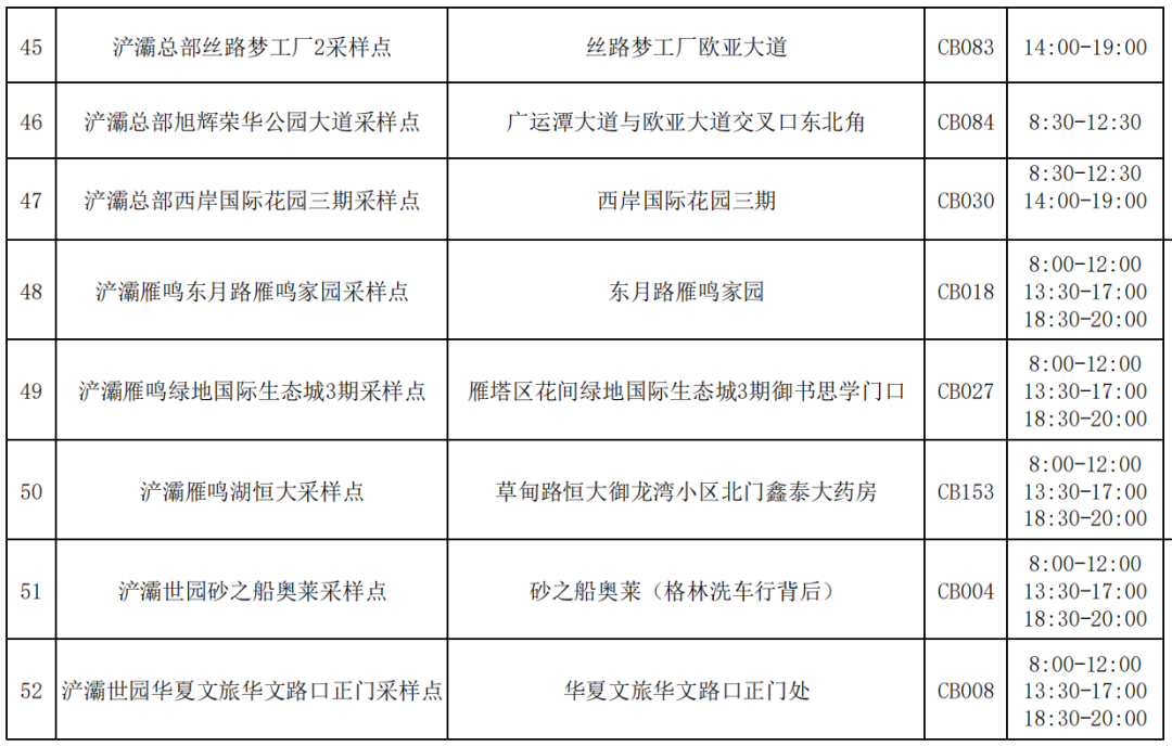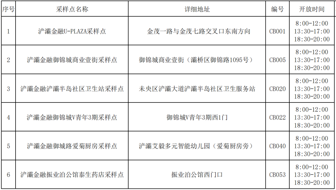 为使居民就近就便接受核酸采样服务,提高检测预警的灵敏度,浐灞生态区构建15分钟便民核酸“检测圈”,第一批共设置61个核酸采样点,具体如下: