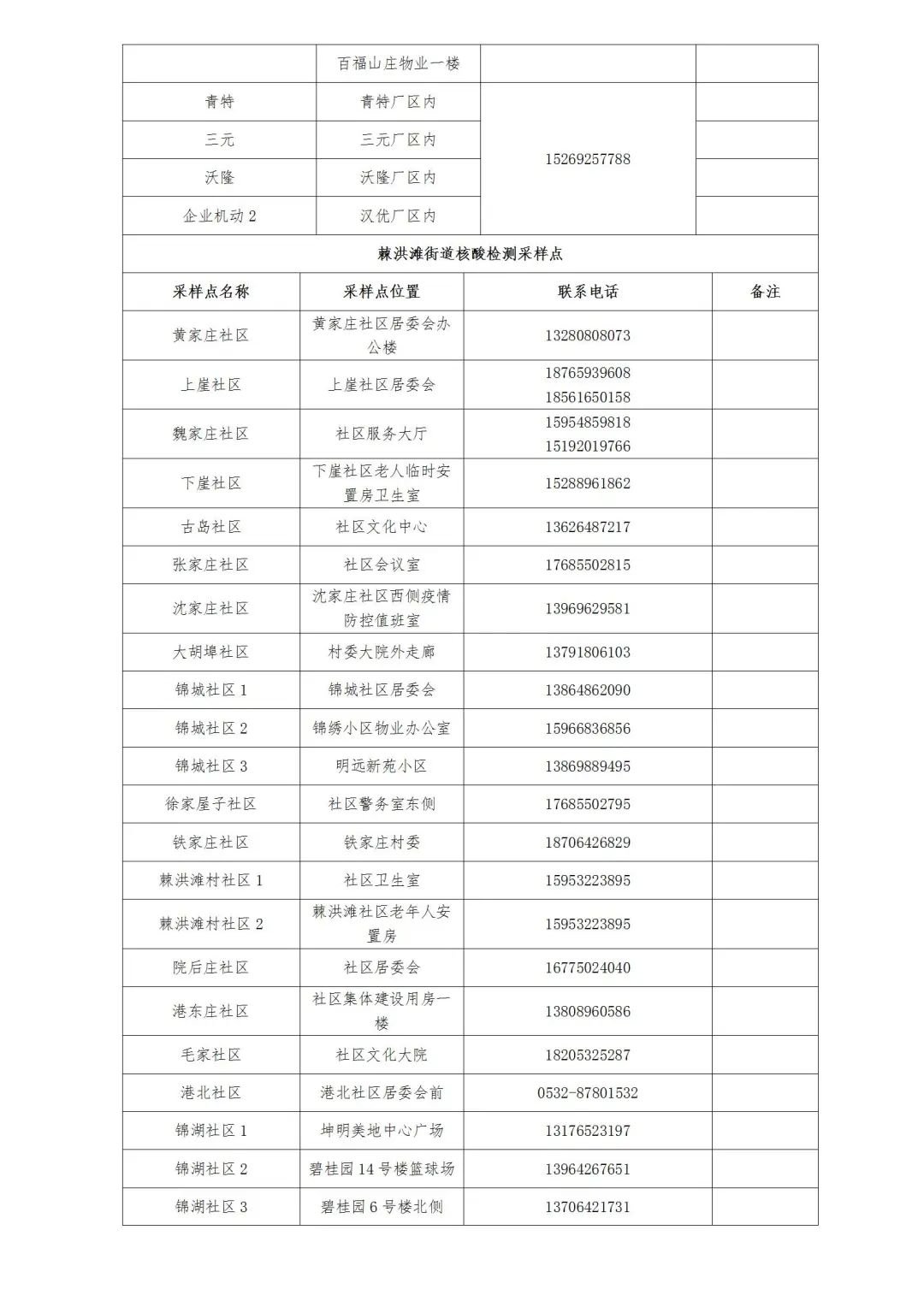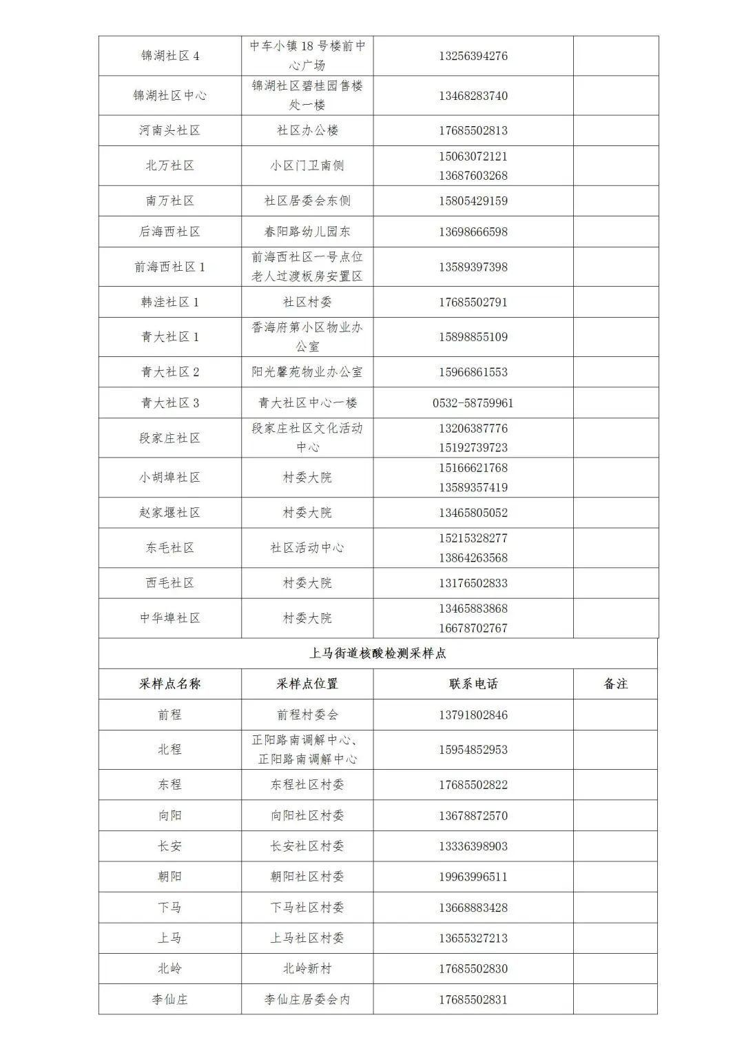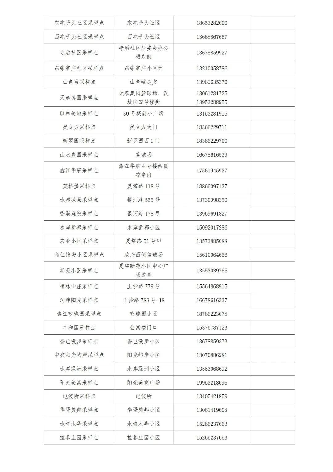 各街道、高新区防指办、高新便民服务中心就近设置采样点(采样点信息附后),请关注区及各街道、高新区防指办、高新便民服务中心发布的信息。