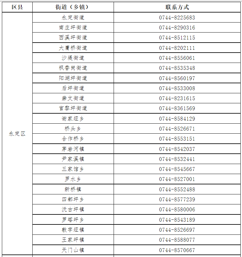 各街道(乡镇)联系电话
