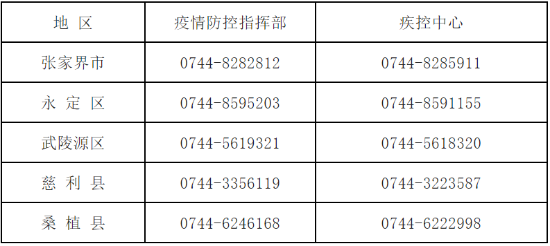 张家界市市县两级疫情防控指挥部和疾控中心24小时值班电话