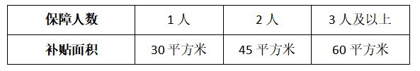 ①补贴面积:根据保障人数而定,保障人数为1/2/3人及以上的,补贴面积分别为30/45/60平方米