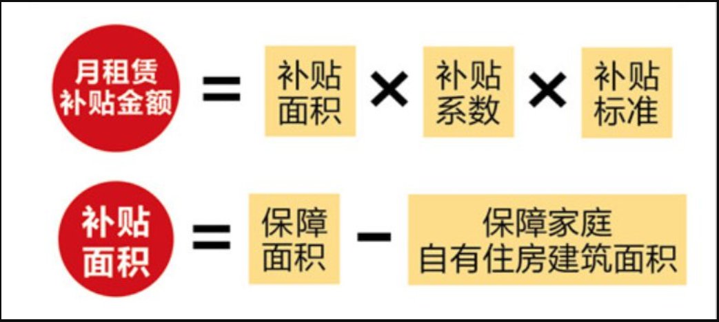 租赁补贴计算公式为:月租赁补贴发放标准=补贴面积×补贴系数×补贴标准。