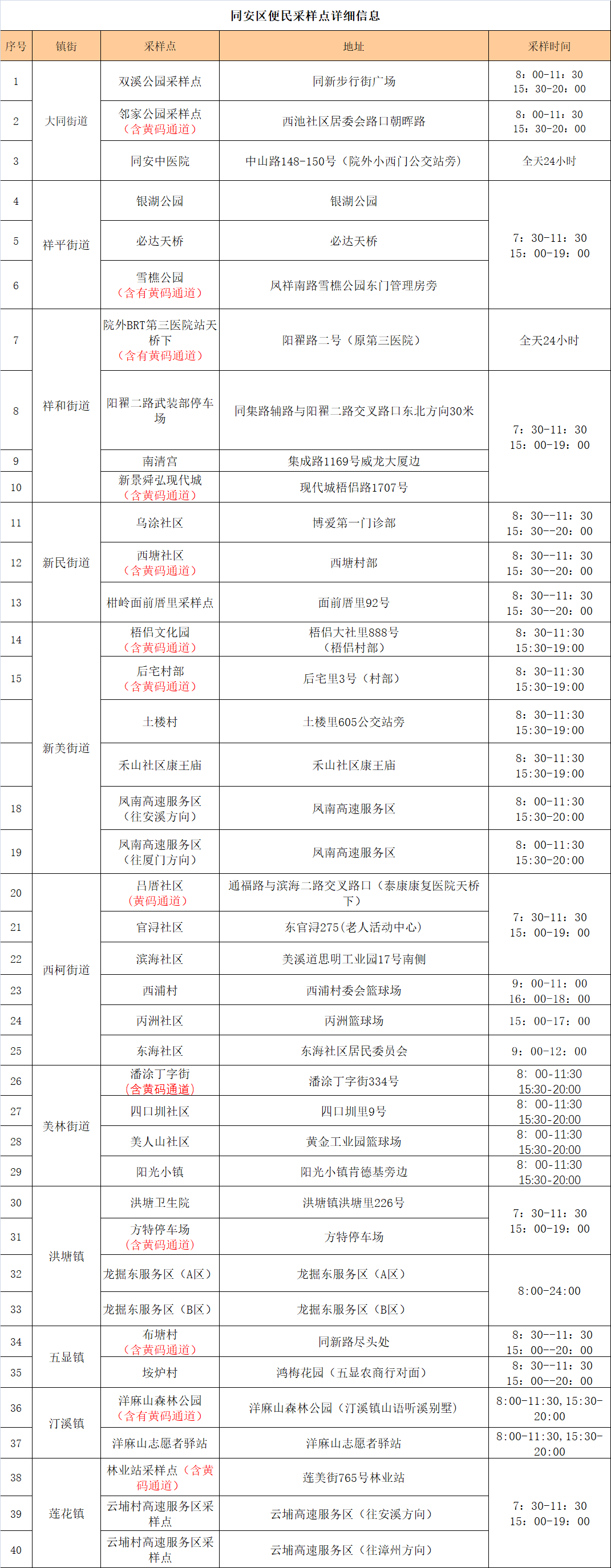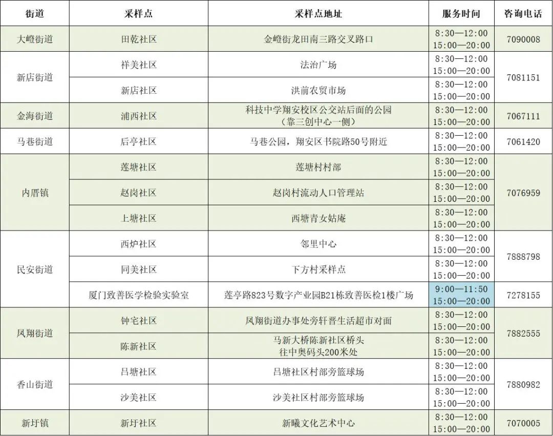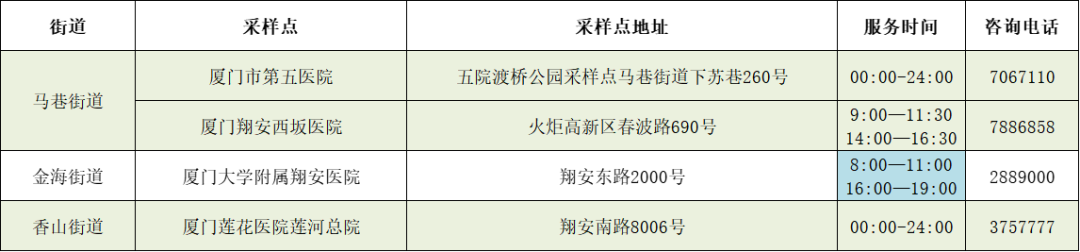 翔安区便民核酸采样点