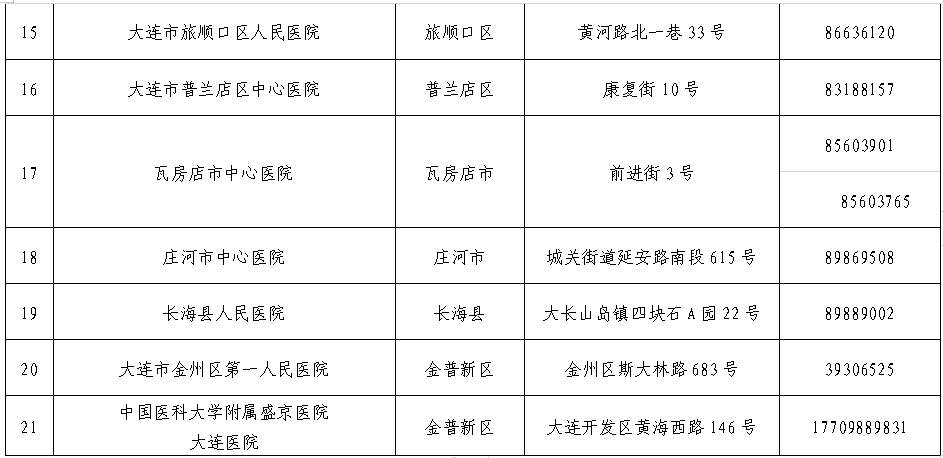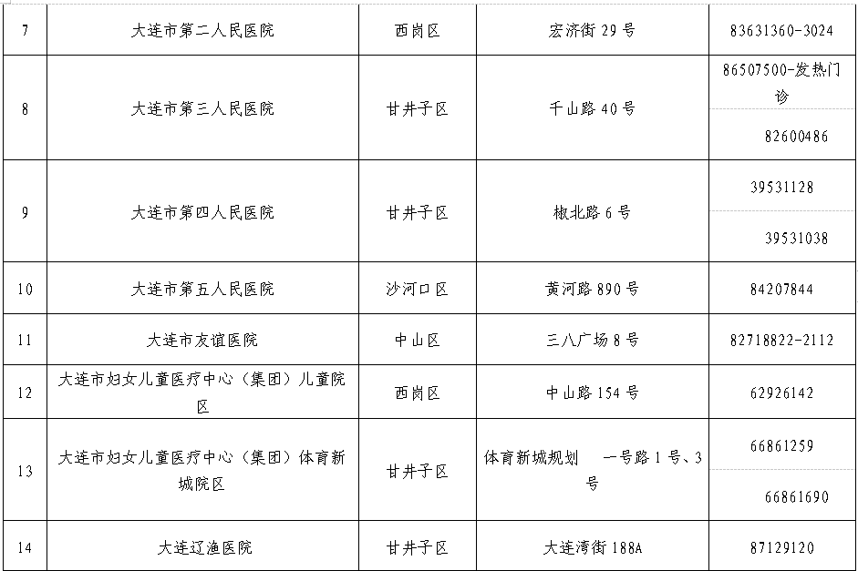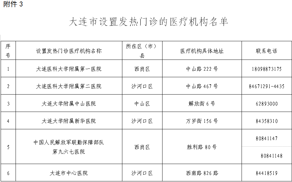 3.大连市设置发热门诊医疗机构名单
