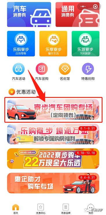 ② 点击“寮步汽车团购专场”优惠活动领券页