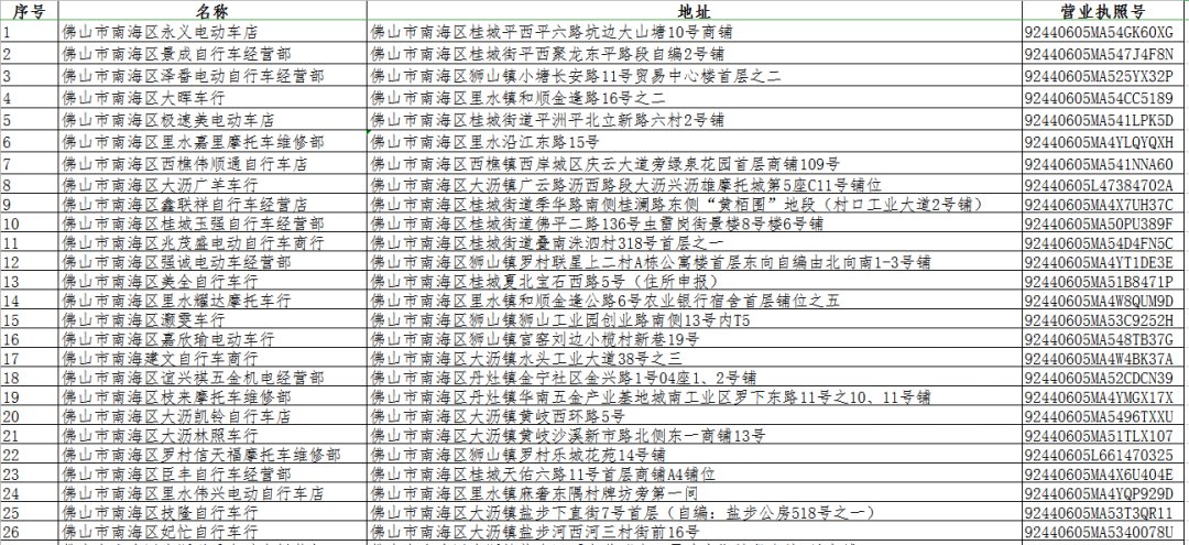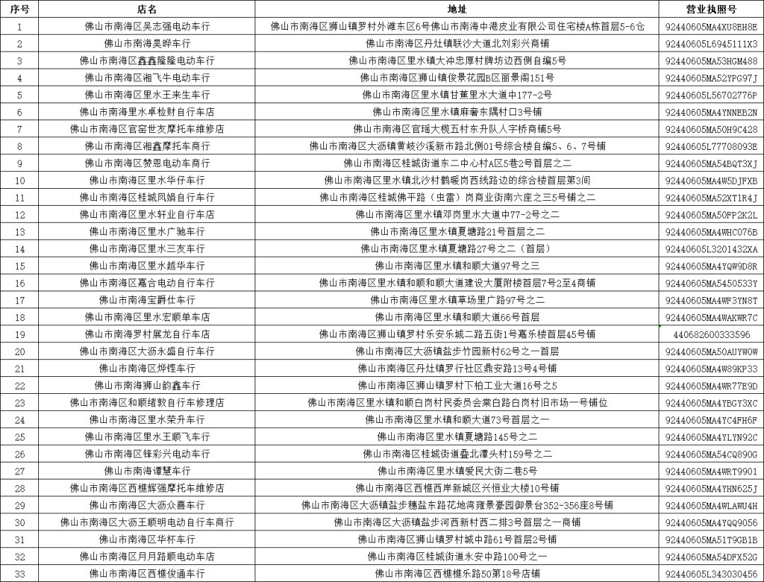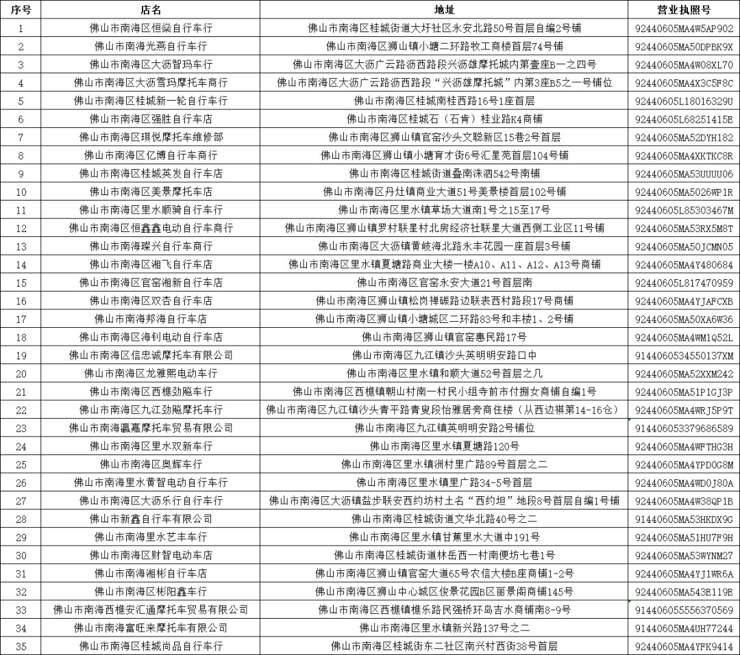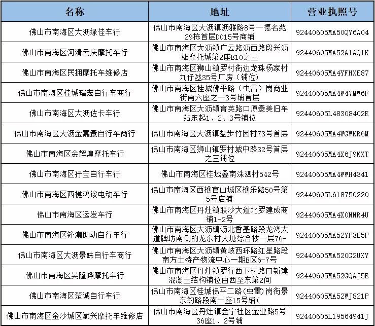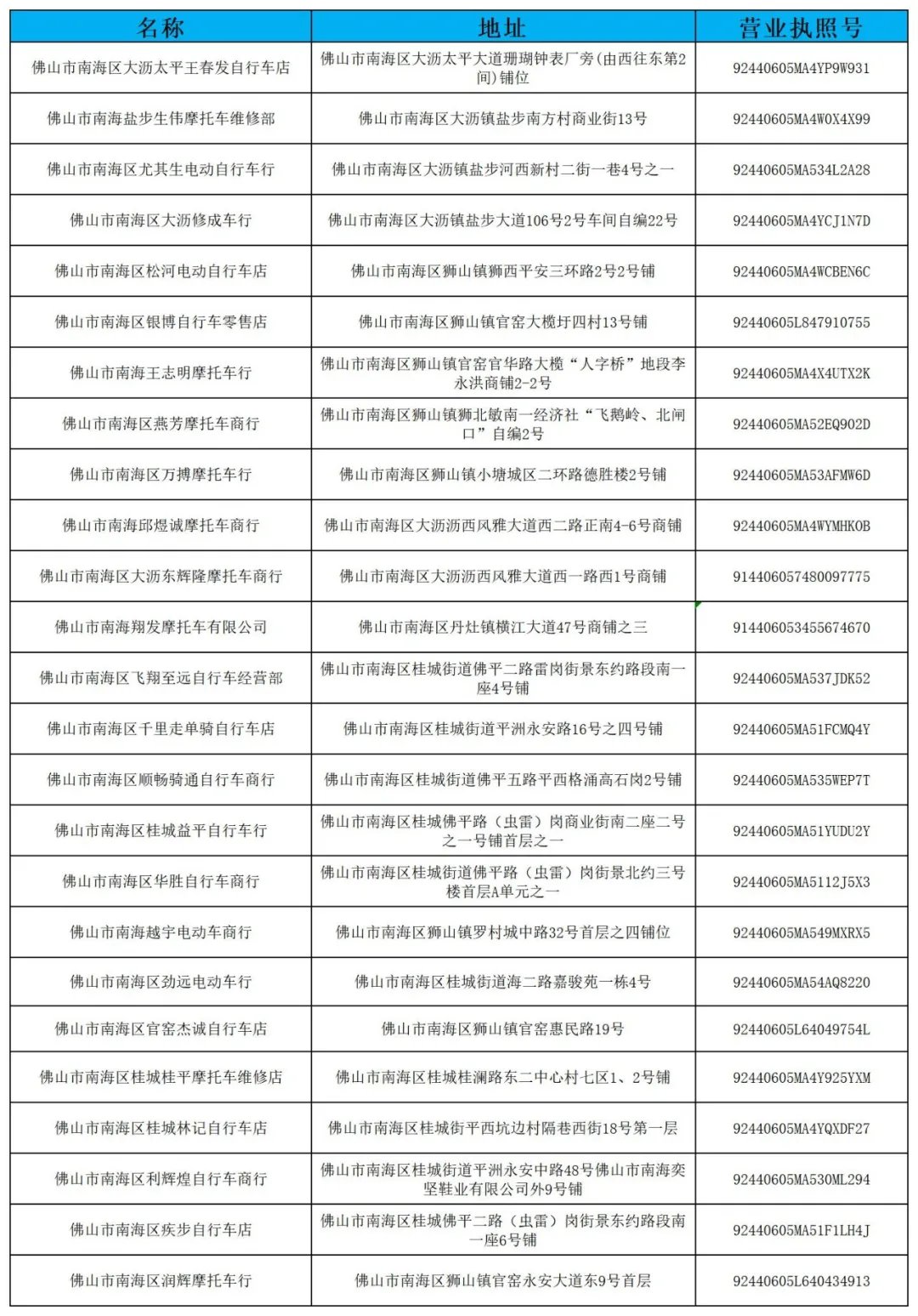 经市场监督管理局和市公安局核准,佛山一共公布了八批电动自行车带牌销售企业的清单,共766家电动自行车带牌销售企业。