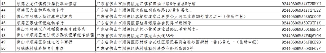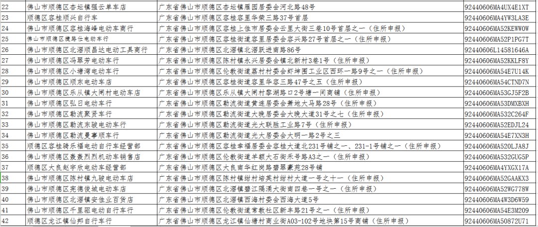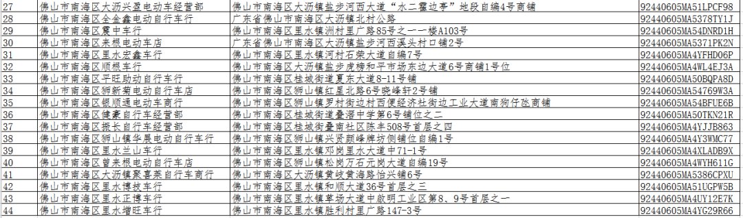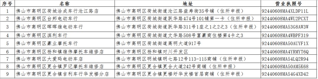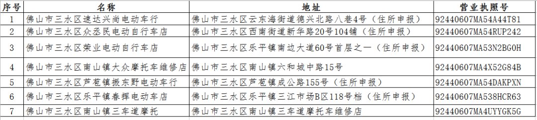 佛山第七批电动自行车带牌销售网点一览
