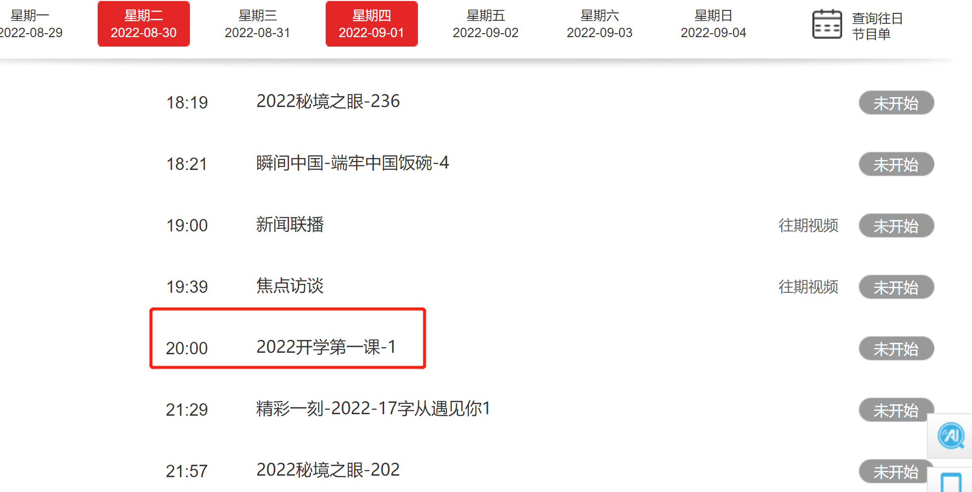 2022秋季cctv1开学第一课直播视频在线观看入口