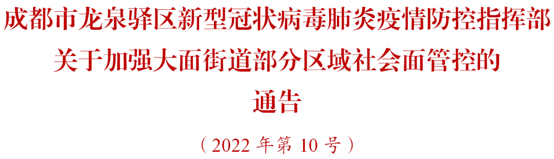 龙泉驿大面街道疫情管控最新通告2022 龙泉市疫情防控最新消息