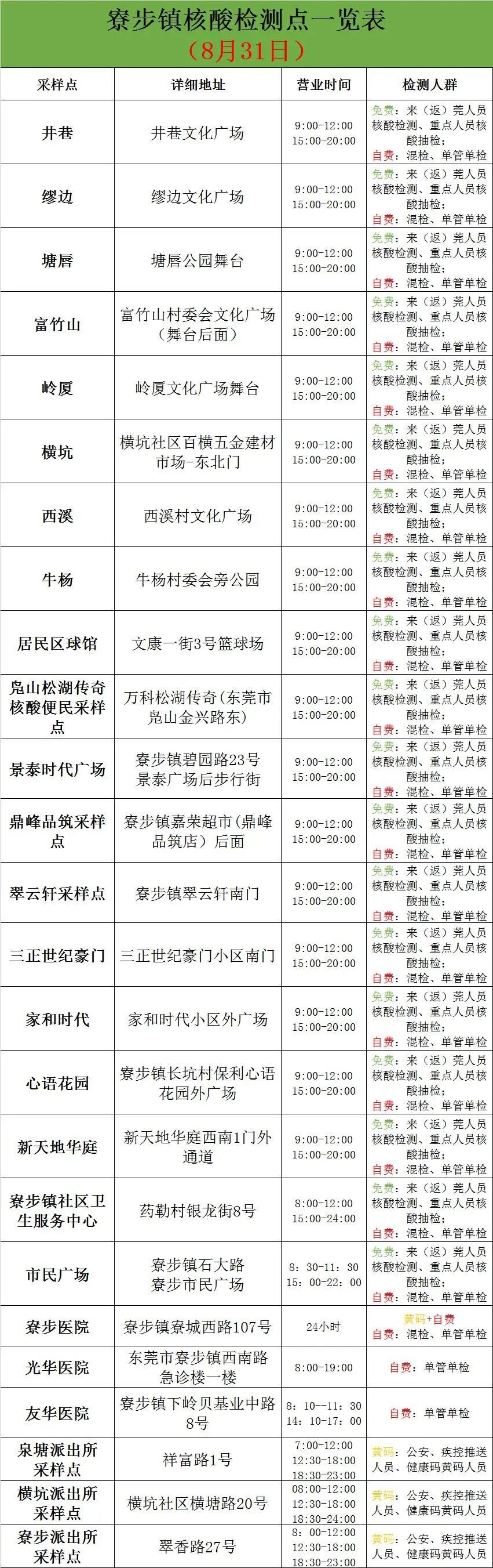 8月31日东莞寮步镇区域核酸检测安排 寮步横坑核酸检测点