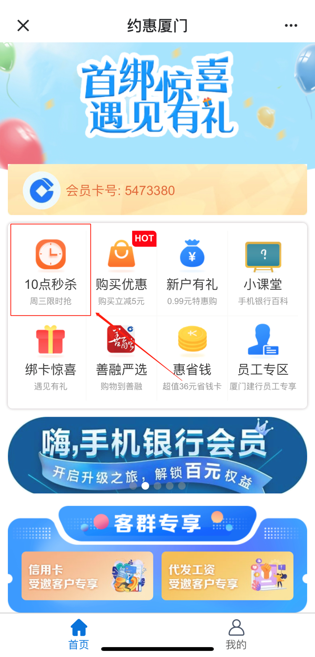 操作指南:登录建行手机银行-“约惠厦门”-“10点秒杀”