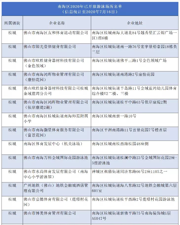 2020佛山已开放游泳场馆名单汇总 佛山游泳场开放时间