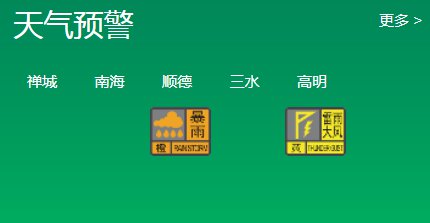 目前,顺德橙色暴雨预警,高明雷雨大风黄色预警生效中,请各位市民注意。