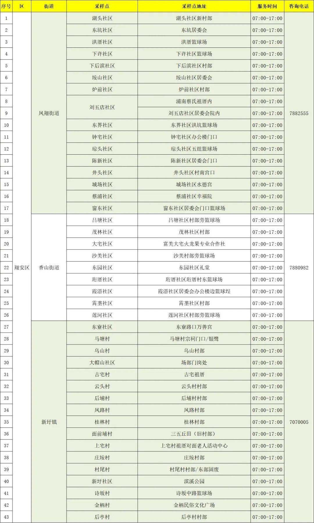 采样点位及时间仅供参考具体以镇(街)、村(社区)通知为准