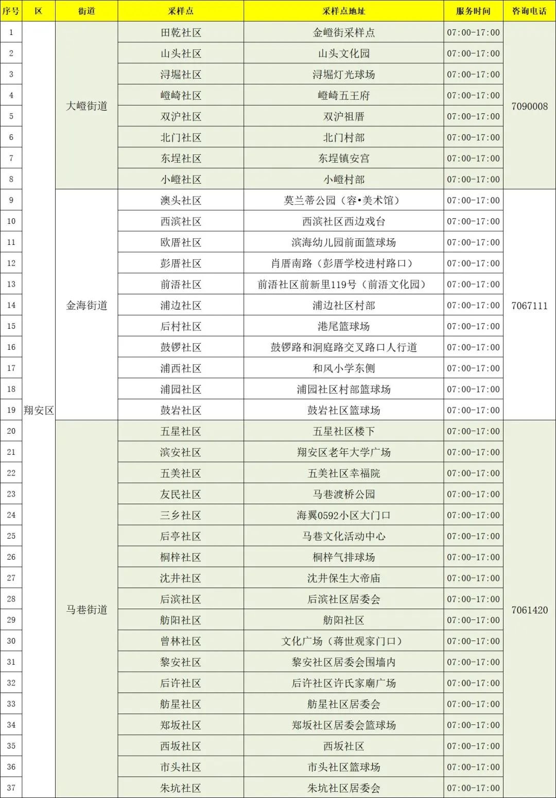 我区于大嶝街道、金海街道、马巷街道集中开展核酸检测,以上镇街居民,可前往社区核酸采样点进行检测。