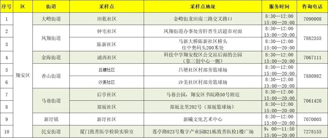 根据市应对疫情工作指挥部【2022】第27号通告精神,9月1日至4日,全市所有人员均须主动有序接受至少一次核酸检测。9月1日-3日,翔安区分区域集中开展核酸检测,所辖区域的居民请按时有序到所属“社区核酸采样点”检测。