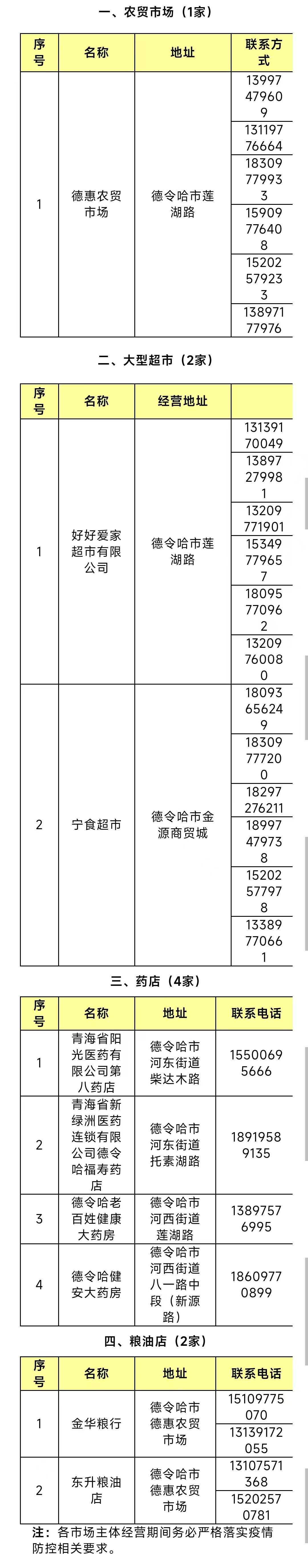 海西州德令哈市居家办公期间基本物资供应名单