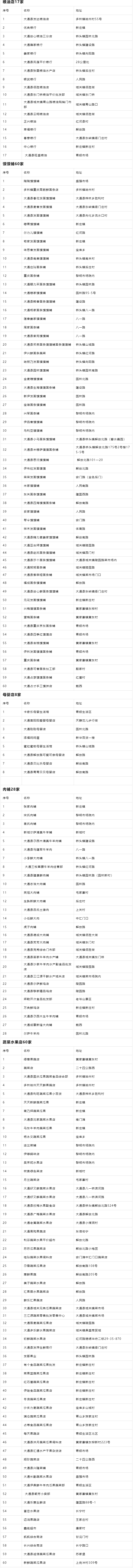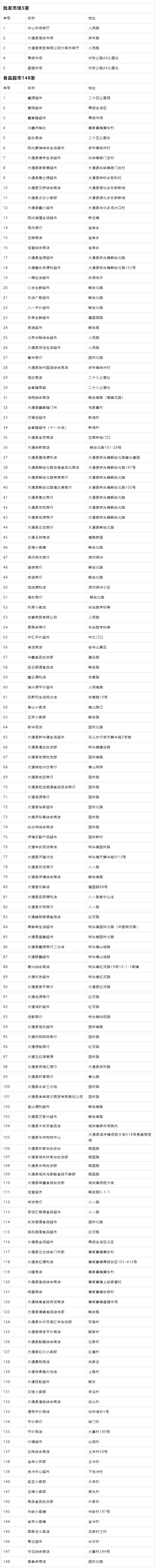 西宁大通县疫情防控期间重点超市及市场开放名单