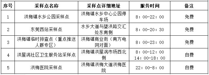 9月1日东莞洪梅镇核酸检测时间+地点 东莞市核酸检测6小时出结果
