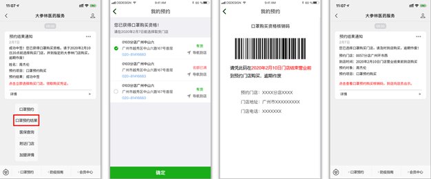 获得公众号预约结果通知(前提是有关注大参林医药服务号);获得短信通知。