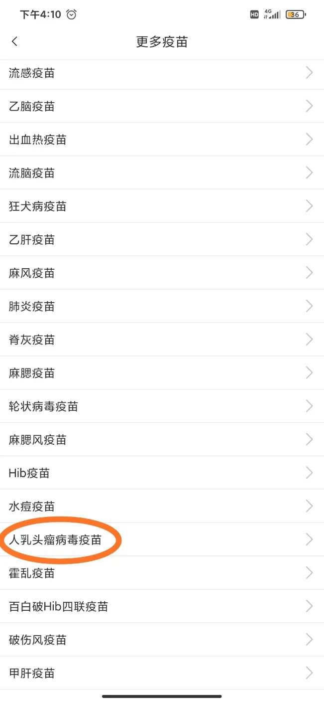 第五步,选择“人乳头瘤病毒疫苗”。