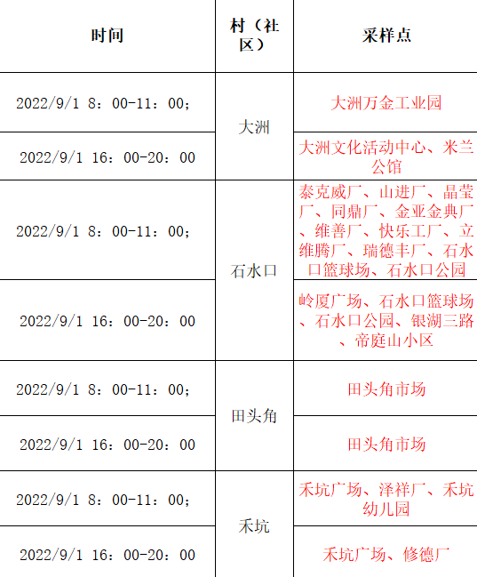 注意:如当日区域核酸检测点与便民检测点有重复,该采样点的服务时间以区域核酸检测的时间(即上表)为准。