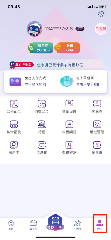 点击“地铁·BRT”图标,使用中行数字人民币免密支付扫码乘车。