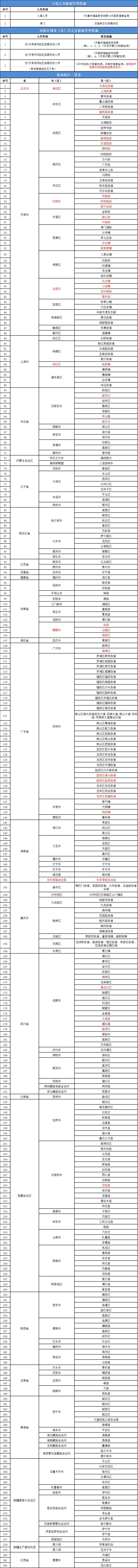 二、来自以下地区的来(返)昌人员严格按照《新型冠状病毒肺炎防控方案(第九版)》要求落实管控措施,指挥部另有要求的按指挥部要求执行。