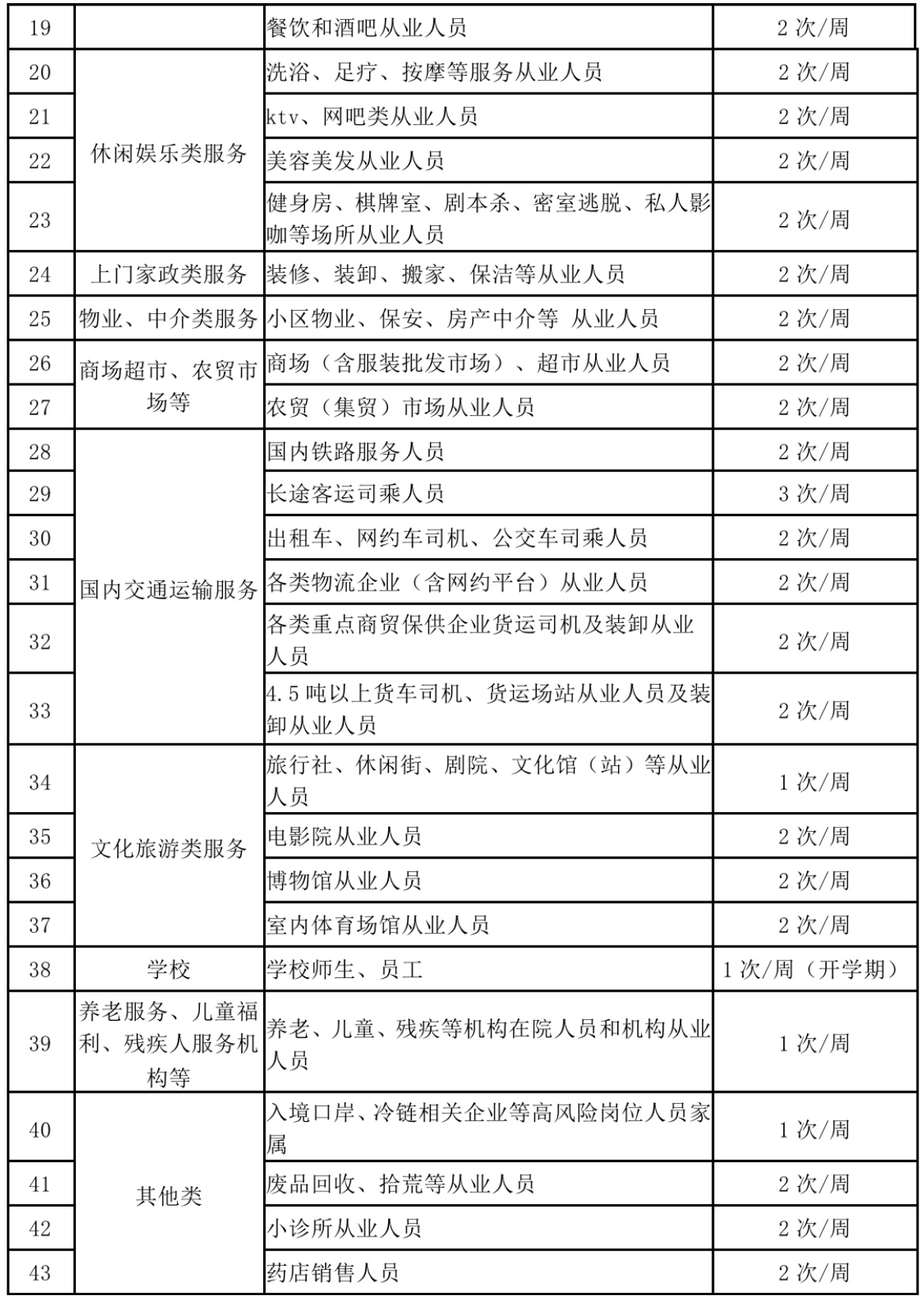 为有效应对当前复杂严峻的新冠肺炎疫情形势,充分发挥重点人群监测预警作用,提高疫情监测灵敏度、精准度,切实做好重点人群周期性核酸检测工作。现将有关事项通告如下: