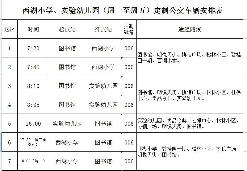 西湖小学、实验幼儿园专线爱