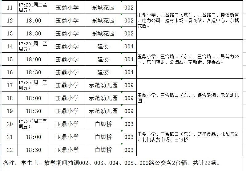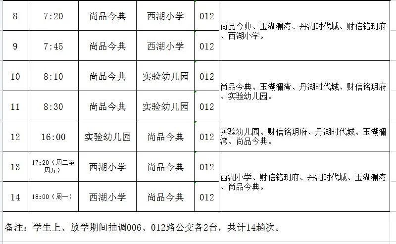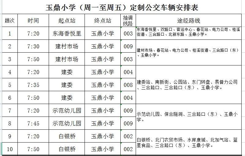周一至周五期间,安排36趟次公交解决玉鼎小学、西湖小学、实验幼儿园师生出行问题