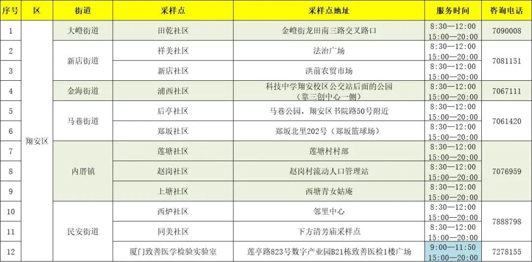 翔安区核酸检测点(点击图片放大查看)