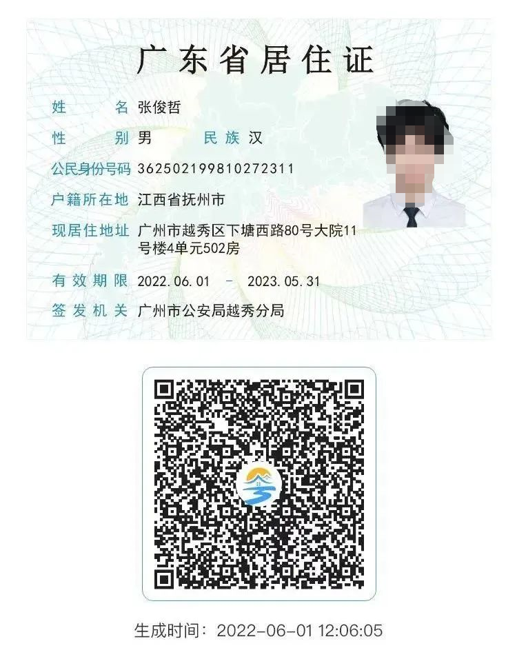 广东省电子居住证样证