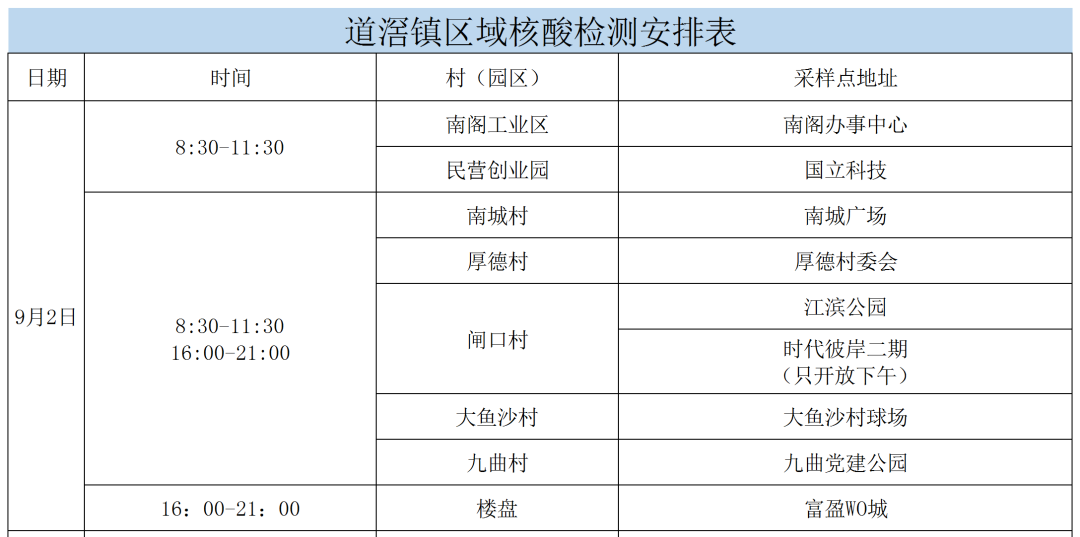 9月2日东莞道滘镇区域核酸检测安排 东莞市道滘镇核酸检测点