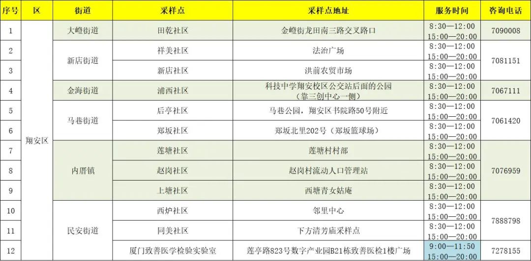 翔安区社区核酸采样点