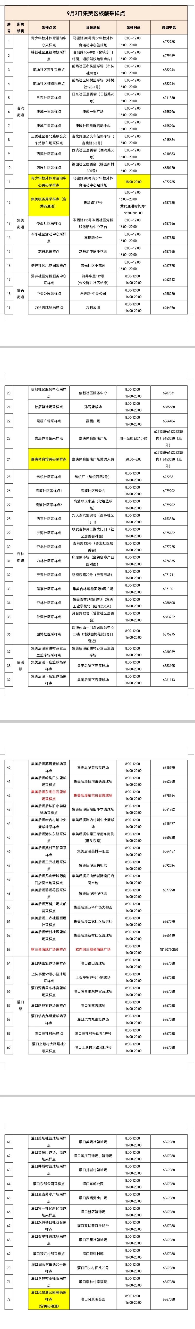 9月3日,翔安区将于凤翔街道、香山街道、新圩镇集中开展核酸检测,以上镇街居民,可前往社区核酸采样点进行检测。