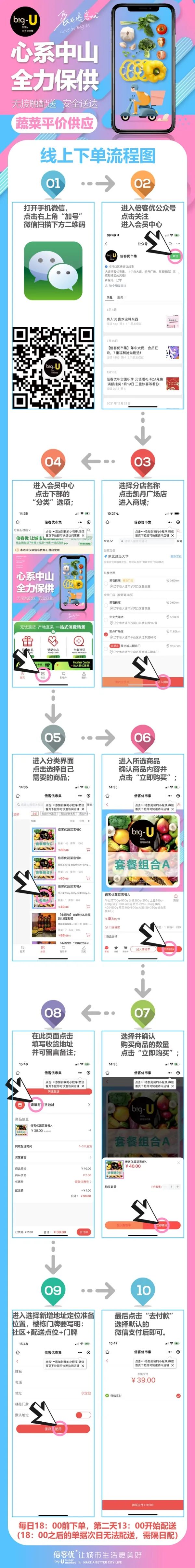 为了您的订单能够精准、及时送达,请在下单填写地址时按照“街道+社区+配送点位+具体配送地址及联系电话”准确填写。对于不会或不方便使用线上方式购买的居民,可联系社区服务人员提供代买服务。