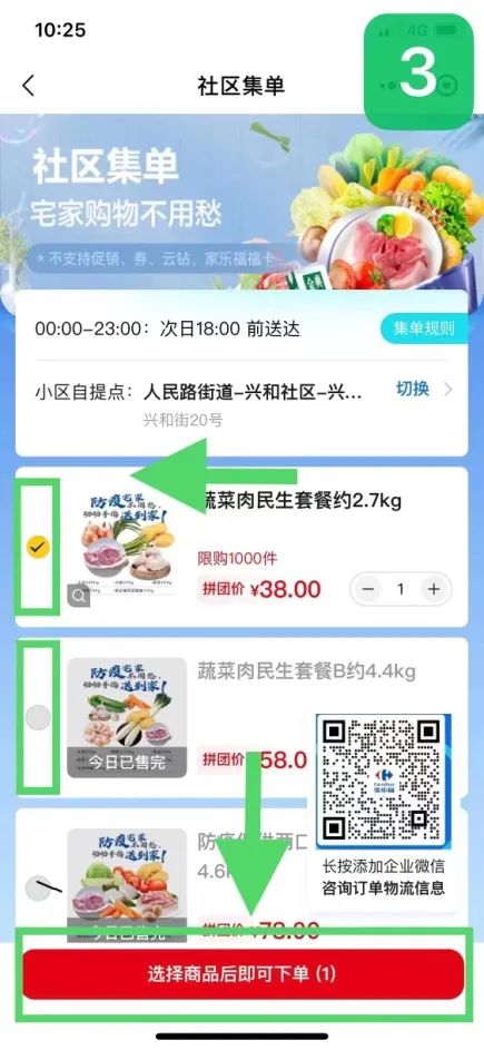 通过微信扫码——选择“社区集单 省心团购”窗口进行下单。