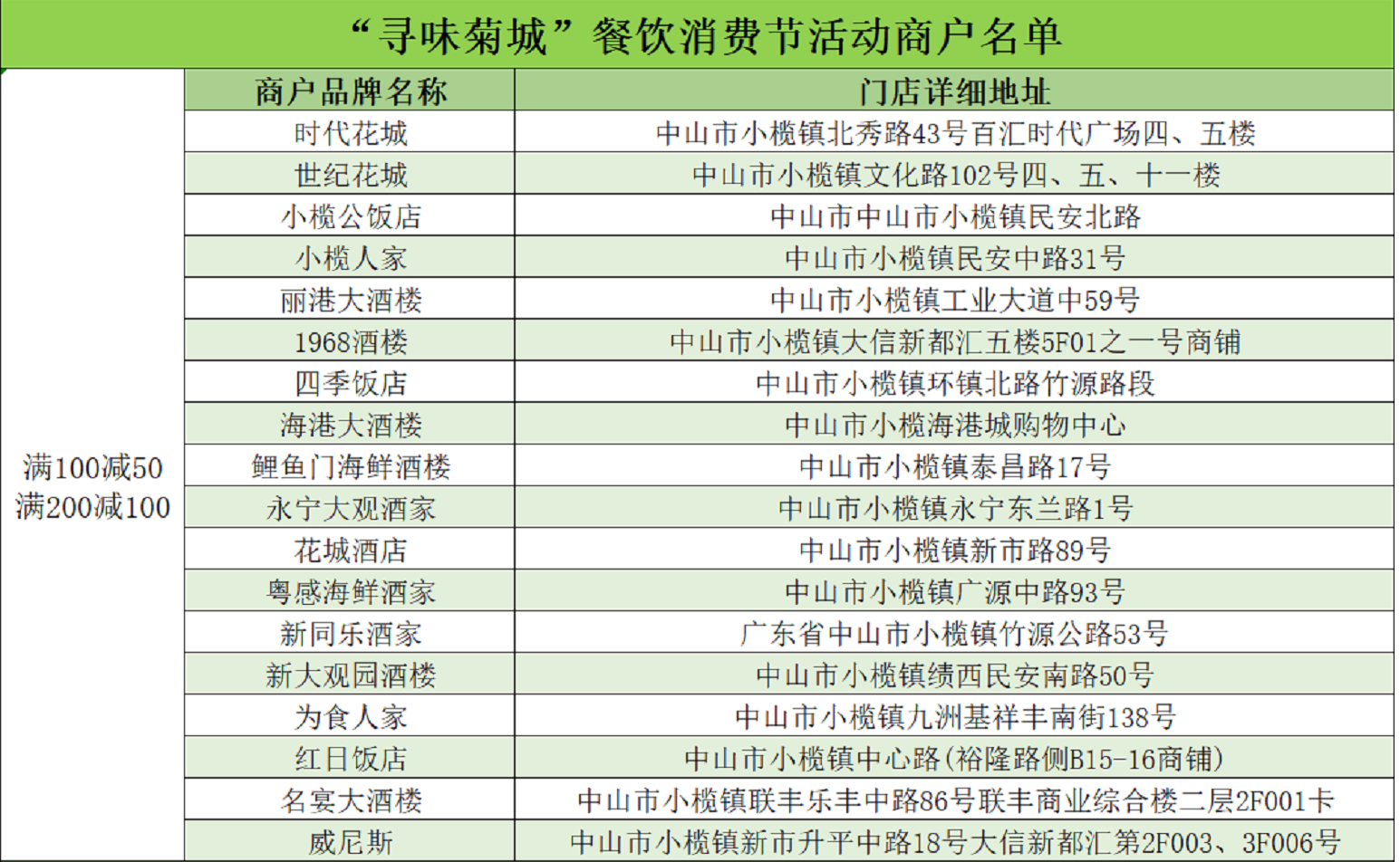 参加活动的商户名单