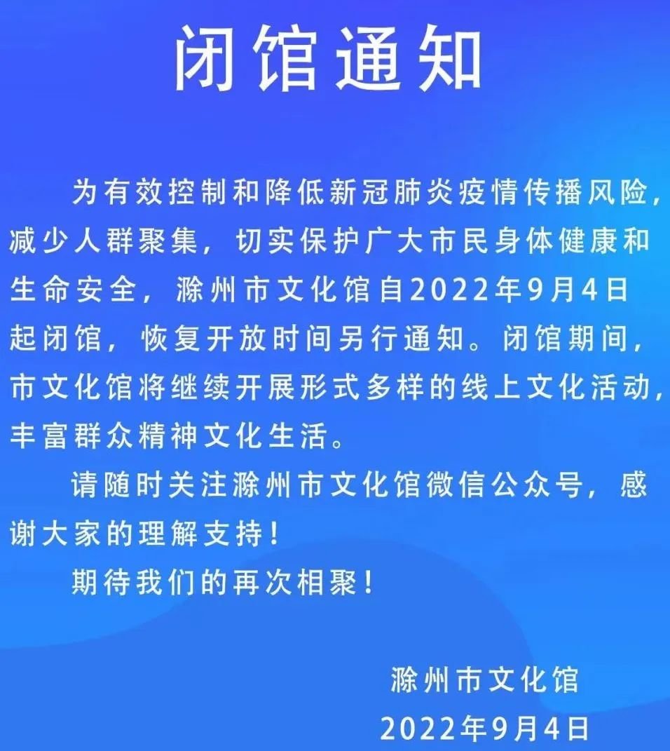 滁州疫情原因暂停闭馆闭园公告汇总(滁州疫情原因暂停闭馆闭园公告汇总表)