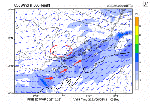 从6月7-9日850hpa风场和500hpa高度场数值预报图(图1)可以看出,低涡切变缓慢移动,影响广东,配合西南急流充沛的水汽,天气不稳定,强降雨天气又即将来袭啦!