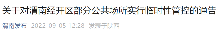 从9月5日5时起对渭南经开区部分公共场所实行3天临时性管控。
