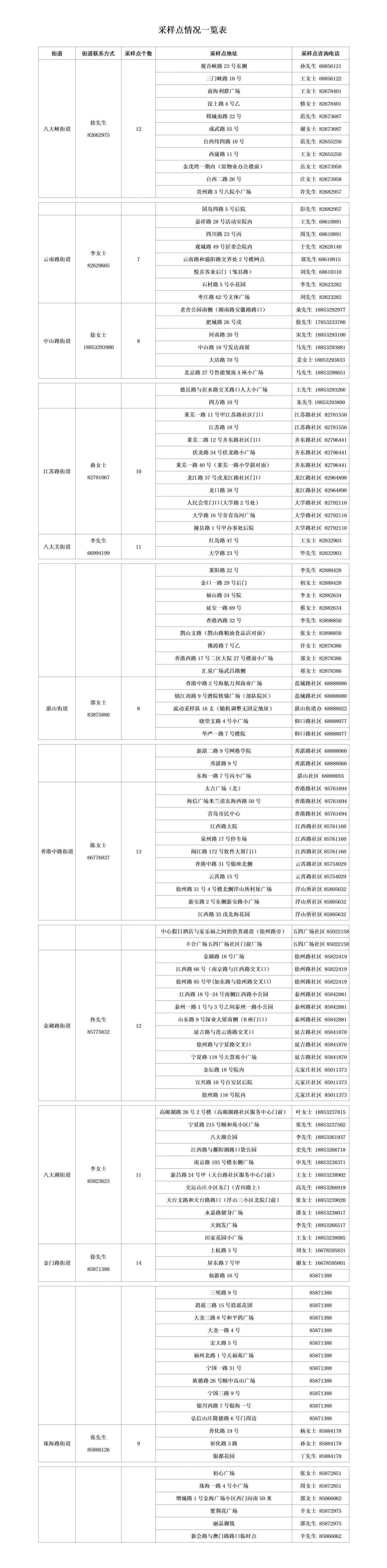 由各街道办事处统一安排采样点,具体信息详见采样点情况一览表(附后),或扫描“市南区核酸检测采样点地图小程序”(附后),对核酸检测采样点进行查询。