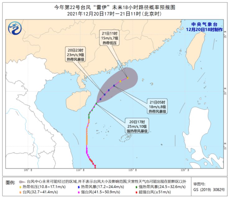 预报结论:“雷伊”将以每小时20-25公里的速度向东北方向移动,强度迅速减弱