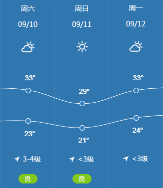 据气象部门信息显示,预计中秋期间我市天气情况如下: