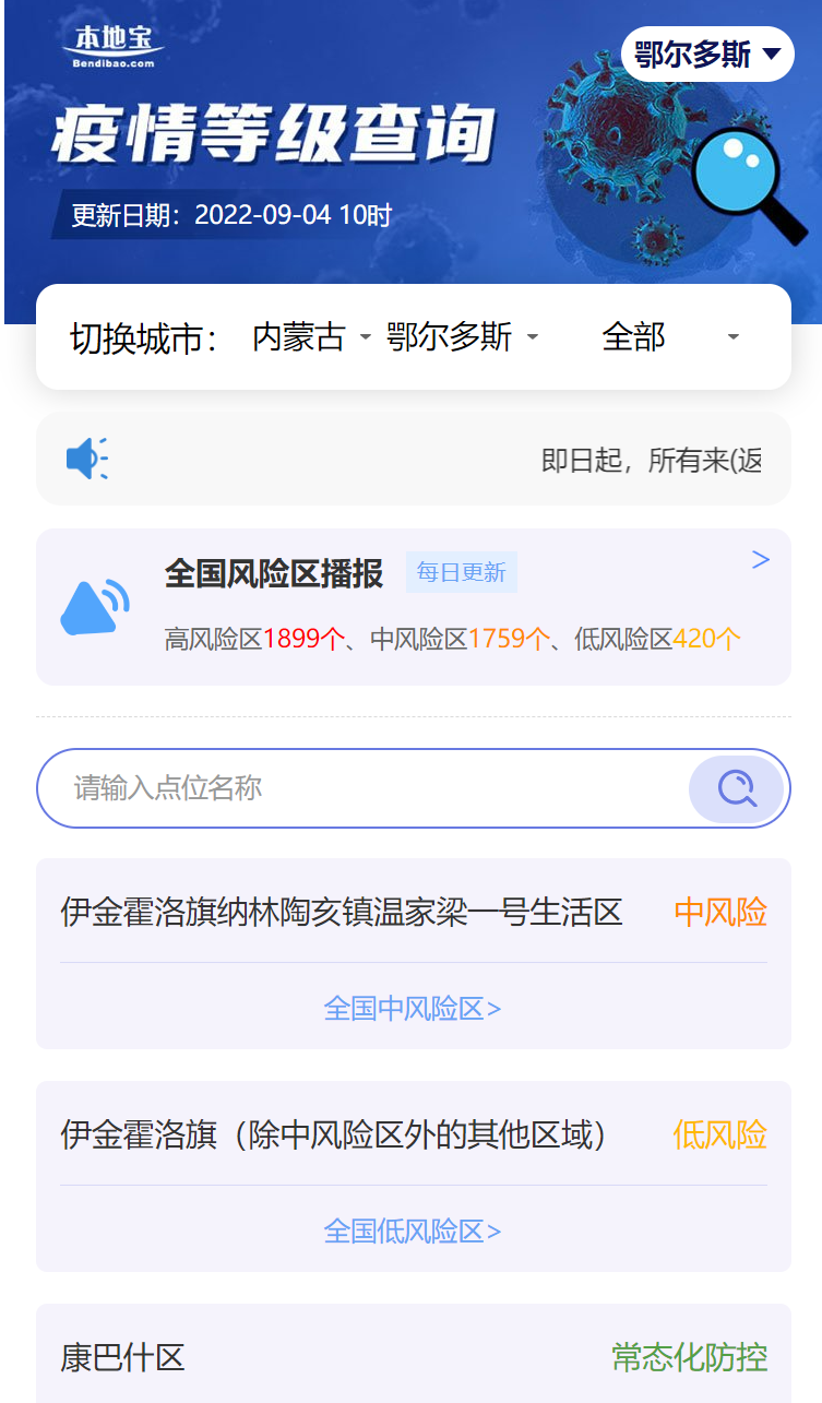 2022鄂尔多斯最新疫情风险等级区域查询(附入口)