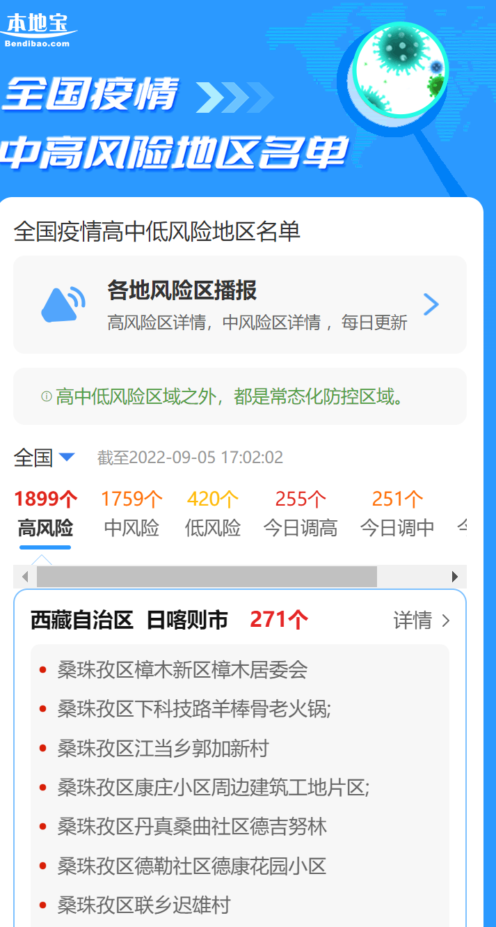 特别提醒:切换城市可查询全国各地最新风险等级,输入区县名称还可进行精准查询。